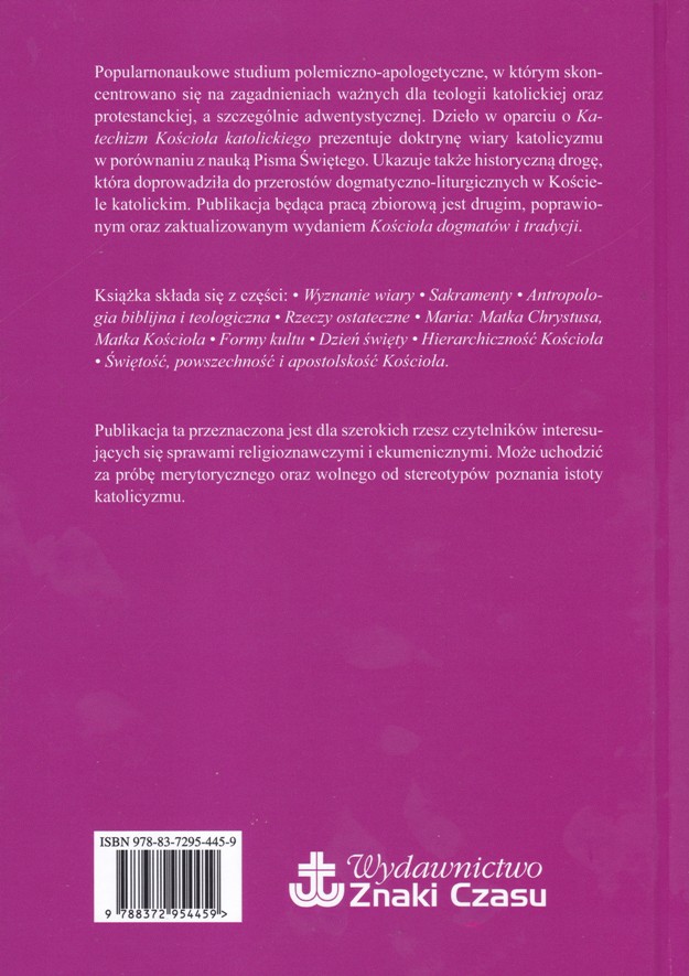 Okładka publikacji adwentystów „KOŚCIÓŁ DOGMATÓW I TRADYCJI” (wyd. „Znaki Czasu”) celowo naśladuje wizualnie Katechizm Kościoła Katolickiego (wyd. Pallottinum), by zasugerować, że Kościół katolicki to system oparty na „dogmatach i tradycji” w sensie pejoratywnym – jako substytut Pisma Świętego. Poniżej analiza kluczowych elementów graficznych i tekstowych, oparta na opisie obrazu.