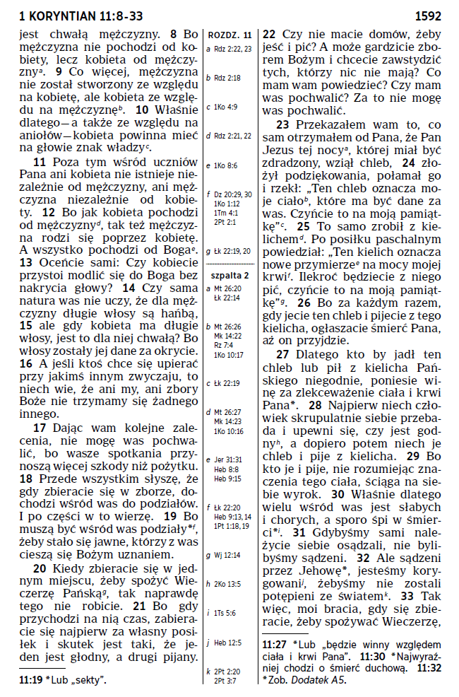 Świadkowie Jehowy nie zmienili Biblii? Naprawdę? Obawiam się, że jednak jest odwrotnie. Czy prawdą jest, że Świadkowie Jehowy do swoich wierzeń dopasowali swoją Biblię? Czy na to pytanie można odpowiedzieć twierdząco? Przyjrzyjmy się temu bliżej. Tym razem wersetowi z 1 Kor 11, 24-25: