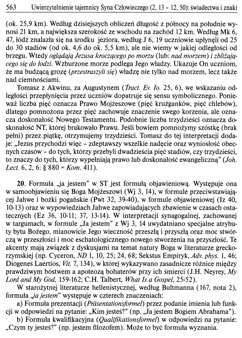 Jezus objawia się w sensie absolutnym, nawiązując do księgi Wyjścia, ukazuje w ten sposób swoje Bóstwo oraz jako Ten, który panuje nad naturą, której jest Stwórcą.