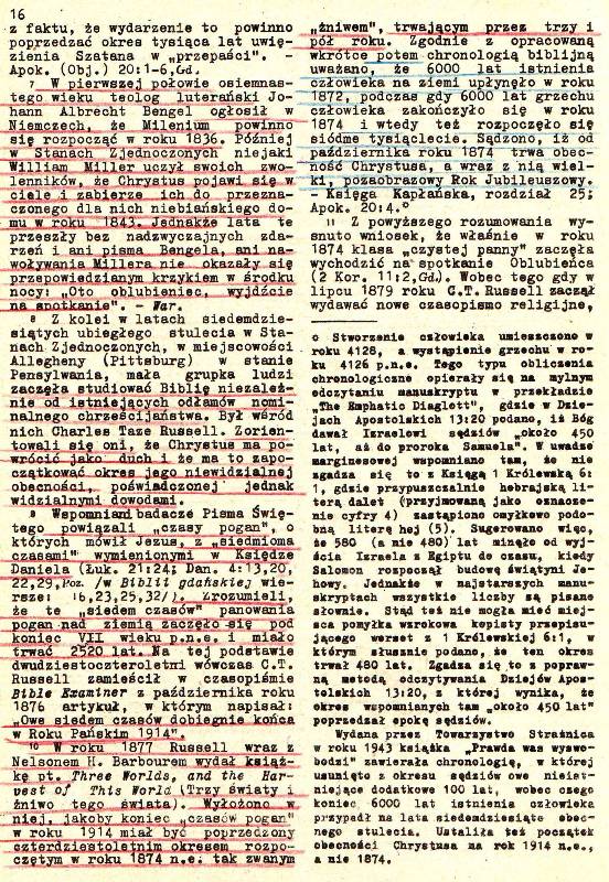 Jeszcze 15 lat po roku 1914 Sędzia Rutherford nauczał o powrocie Pana w roku 1874. Możemy o tym przeczytać w książce: