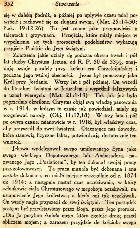 Dziś Świadkowie Jehowy uczą, że "czas końca" zaczął się w 1914 roku, natomiast w tej książce uczą o innej dacie: